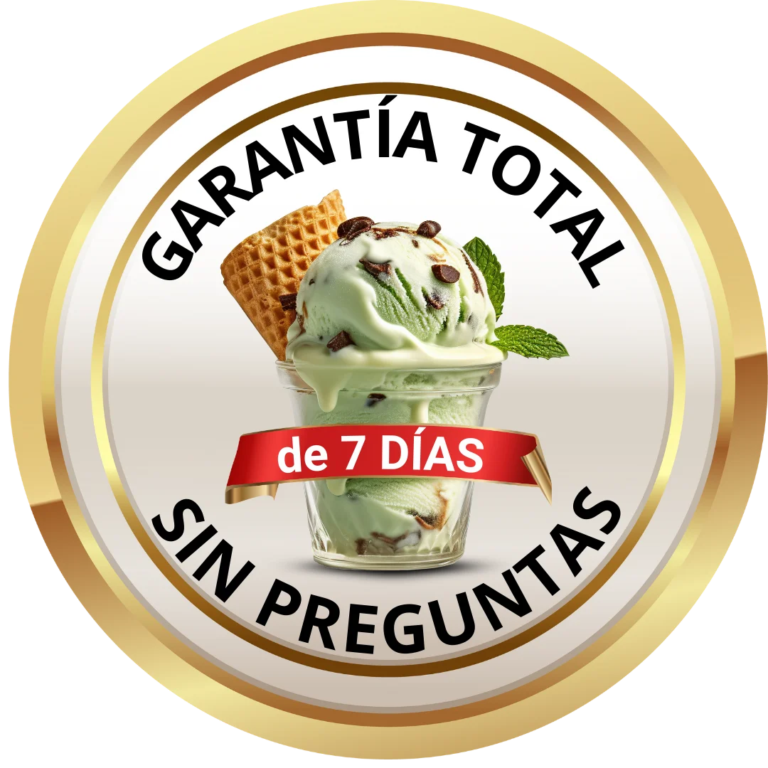 Tenemos garantía de 7 días, si no logras un helado cremoso siguiendo las instrucciones, te devolvemos tu inversión sin preguntas.